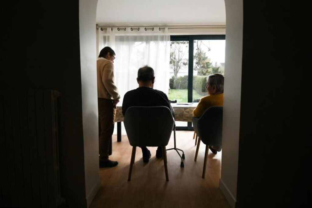 | Les résidents d'un établissement accueillant des patients atteints d'Alzheimer, en février 2022 près de Paris, en France. |