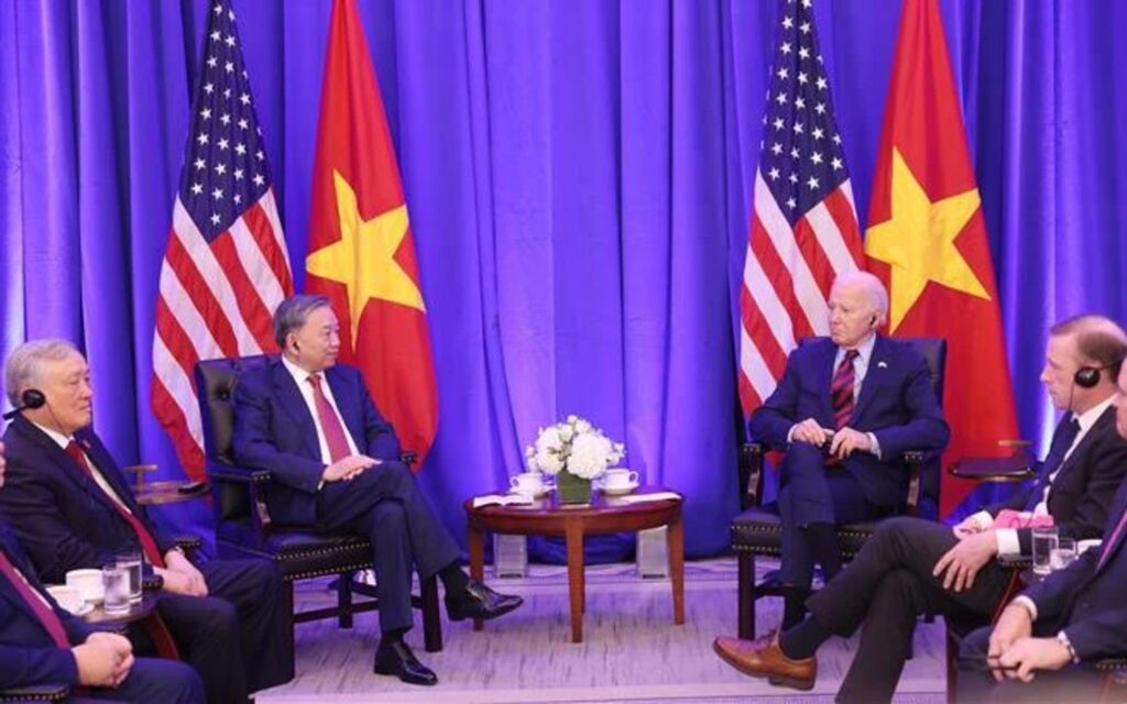 Tô Lâm a respectueusement remercié le président américain pour son affection et ses grandes contributions aux relations Vietnam - États-Unis, estimant que la visite historique aux États-Unis en 2015 du secrétaire général du Parti Nguyên Phu Trong et la visite du président Joe Biden au Vietnam en septembre 2023 avaient créé un moteur important pour le développement spectaculaire des relations entre les deux pays pour atteindre au plus haut niveau, partenariat stratégique intégral, ouvrant un espace permettant aux relations bilatérales de se développer de manière forte et stable pour les décennies à venir.