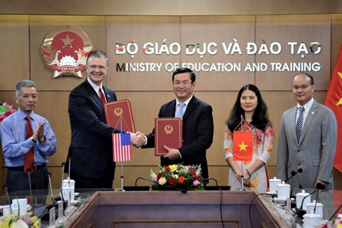 | Signature d'un accord de coopération dans le secteur éducatif entre le Vietnam et les États-Unis, le 10 juillet à Hanoï. |