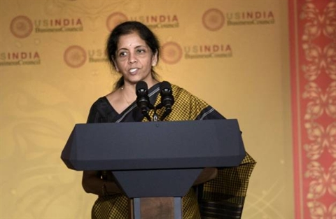 | La ministre indienne du Commerce et de l'Industrie, Nirmala Sitharaman, lors d'une réception sur le dialogue stratégique et commercial entre les États-Unis et l'Inde, le 21 septembre. |