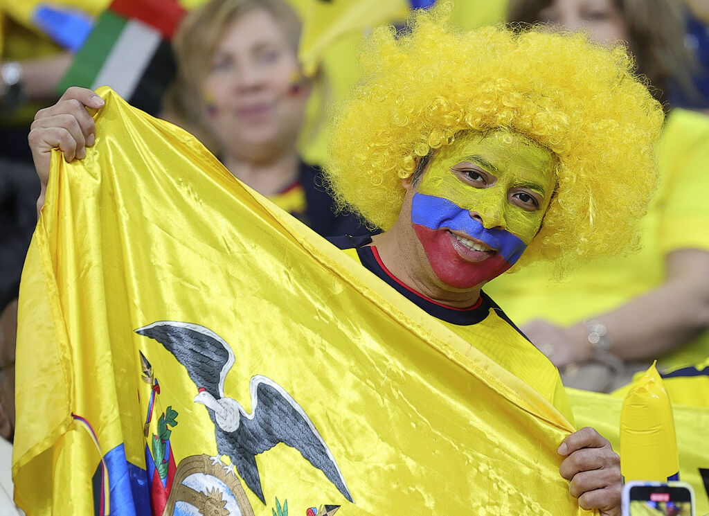 | Un fan réagit avant le match du groupe A entre l'Équateur et le Sénégal au stade international Khalifa de Doha, au Qatar, le 29 novembre. |