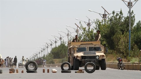 | Des forces de sécurité afghanes patrouillent en périphérie de Herat, le 6 août. |