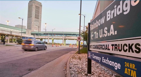 | Une voiture s'apprête à entrer aux États-Unis en traversant le Rainbow Bridge, qui relie la province canadienne de l'Ontario à l'État américain de New York , le 7 novembre. |