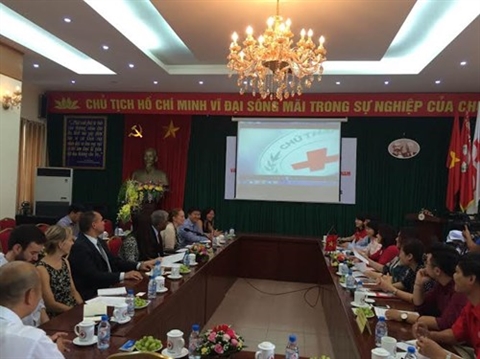 | Séance de travail entre des responsables de la Croix-Rouge vietnamienne et leurs homologues de la Croix-Rouge américaine, le 26 juillet à Hanoi |