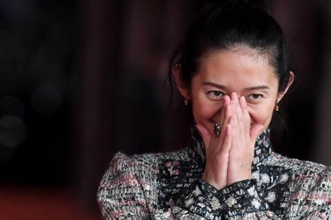 | La réalisatrice Chloe Zhao lors d'une projection de son film Les Eternels, le 24 octobre à Rome. |