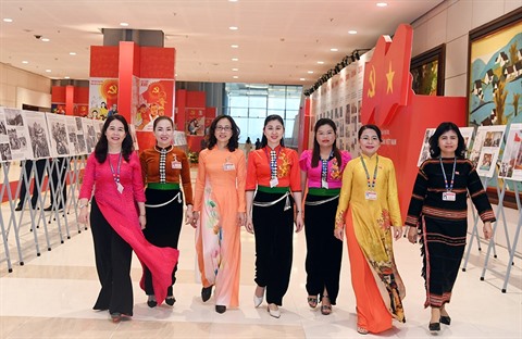 | Les déléguées des ethnies minoritaires participent au XIIIe Congrès national du Parti communiste du Vietnam à Hanoï. |