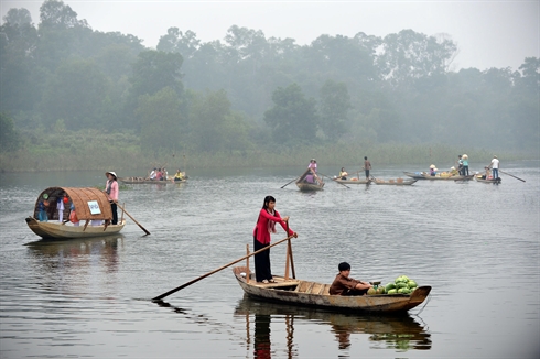 | Le marché flottant du Sud reconstitué au Village culturel et touristique des ethnies du Vietnam à Hanoi. |