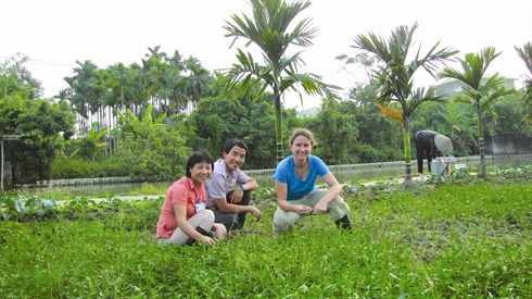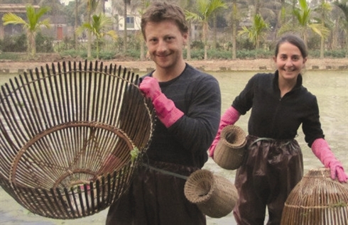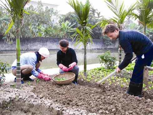 | À Yên Duc, les touristes étrangers se transforment en véritables agriculteurs. |