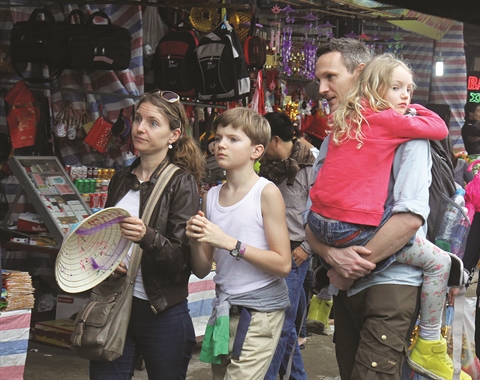 | Une famille étrangère dans l'ambiance animée de la fête Chùa Huong. Thanh Tùng/VNA/CVN |