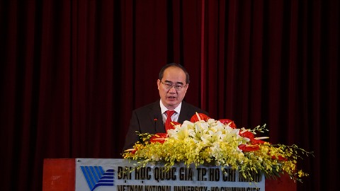 | Le secrétaire du Comité municipal du Parti, Nguyên Thiên Nhân, lors de la cérémonie de rentrée scolaire de l'Université nationale de Hô Chi Minh-Ville, le 12 octobre. |