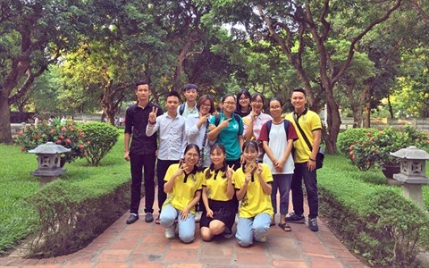 | Des étudiants volontaires au Temple de la Littérature, à Hanoï. |