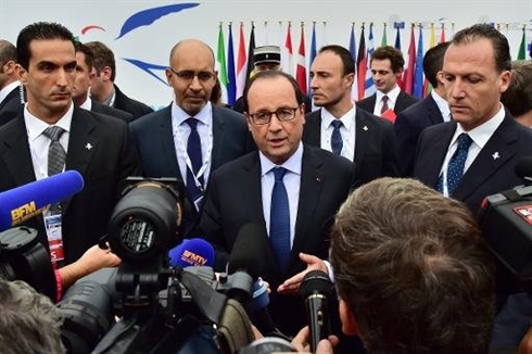 | Le président français François Hollande (centre) à la conférence de Milan consacrée à l'emploi en Europe le 8 octobre |