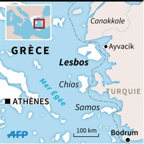| Des migrants à leur arrivée le 10 novembre sur l'île de Lesbos. |