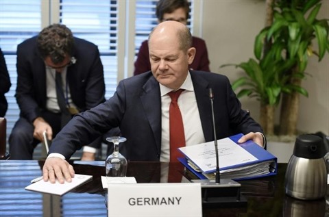 | Le ministre des Finances allemand Olaf Scholz avant la réunion du G7 en marge des réunions du FMI et de la Banque mondiale à Washington, le 17 octobre 2019. |