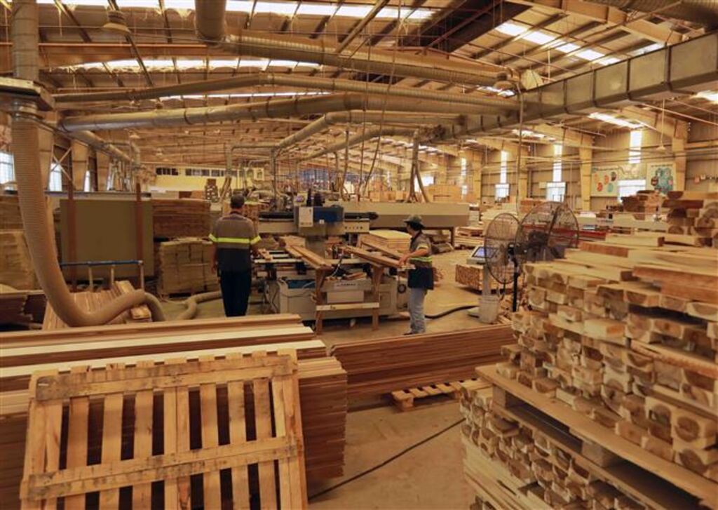 | Production de meubles en bois destinés à l'exportation chez la Sarl SAN-AL Vietnam, dans le parc industriel de Thuân Dao, province de Long An (Sud). |