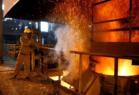 | Dans une aciérie basée à Hung Yên (Nord) du groupe industriel d'acier Hòa Phat. |