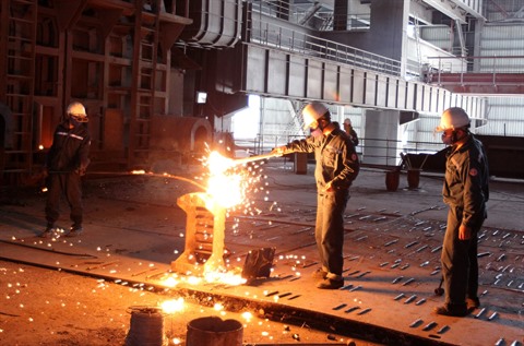| Dans l'usine de fonte et d'acier de la province de Lào Cai (montagne du Nord). |
