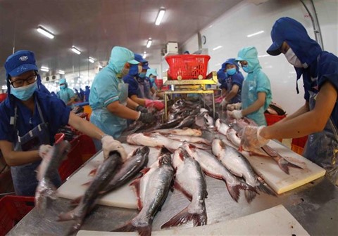 | Transformation de pangasius pour l'exportation, à An Giang (Sud). |