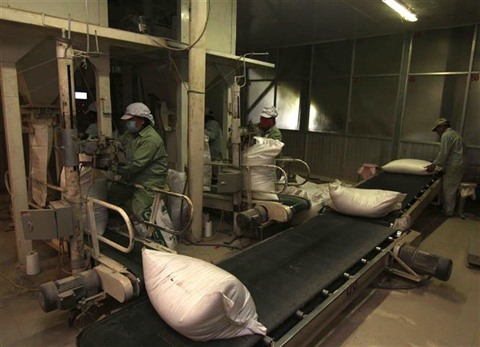 | Emballage de riz pour l'export dans une usine du groupe Lôc Troi à An Giang (delta du Mékong). |
