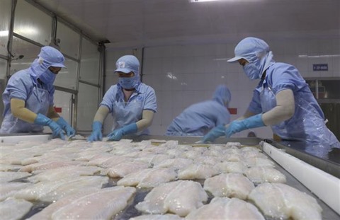 | Transformation des filets de pangasius dans la province d'An Giang (Sud). |