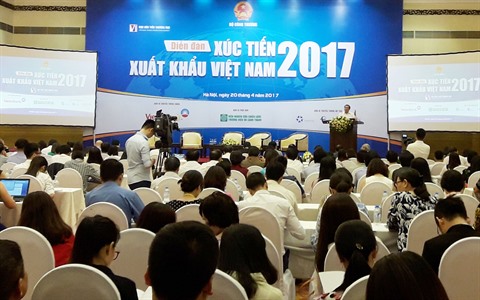 | Le forum sur la promotion des exportations vietnamiennes de 2017, le 20 avril à Hanoï. Photo : Mai Huong/CVN |