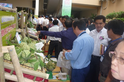 | Des produits agricoles exposés lors de la Journée des végétaux, légumes et fruits des coopératives dans la mégapole du Sud en janvier 2017. |