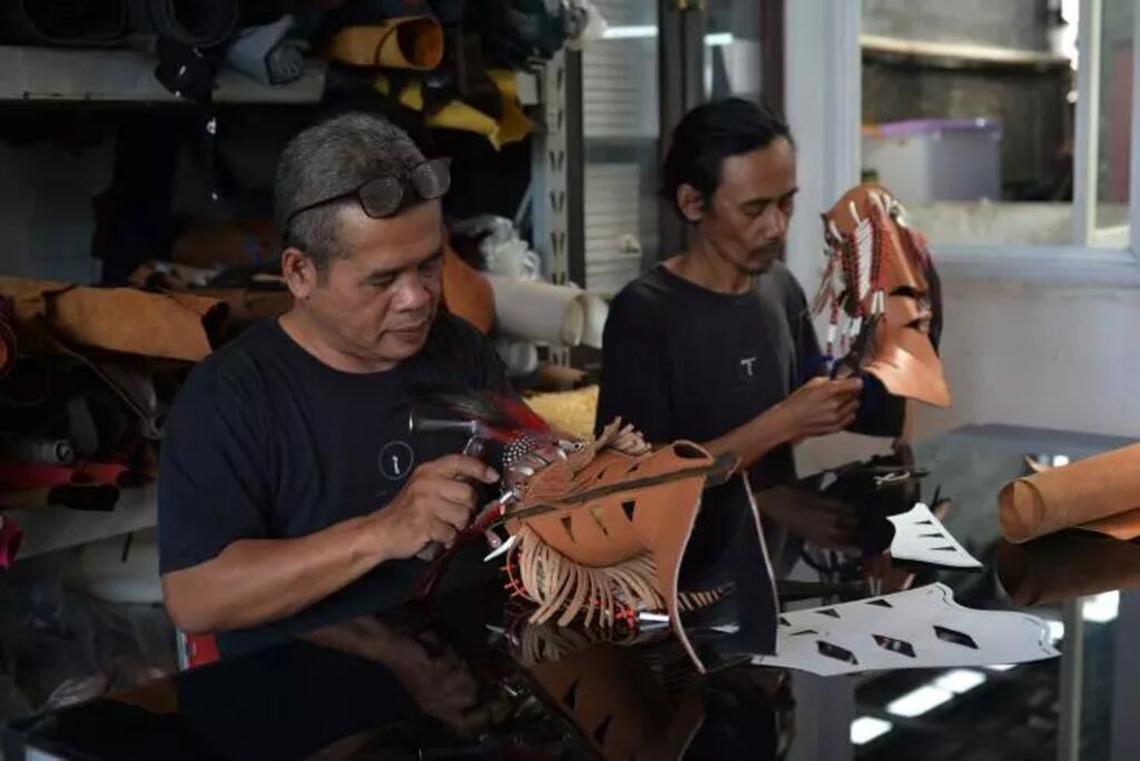 | Des ouvriers au travail pour fabriquer des bottes western dans l'atelier Tegep Boots, à Bandung (ouest de Java), le 15 juillet. |