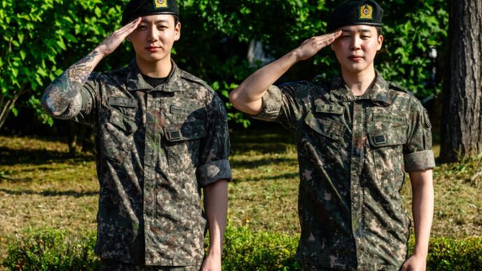Cette semaine, des milliers de fans du septuor se sont rassemblés à Séoul pour célébrer, entre cris et larmes, le retour à la vie civile des quatre membres du groupe libéré de leur service militaire. Seul SUGA, qui effectue un service alternatif pour des raisons de santé, est encore conscrit jusqu'au 21 juin.