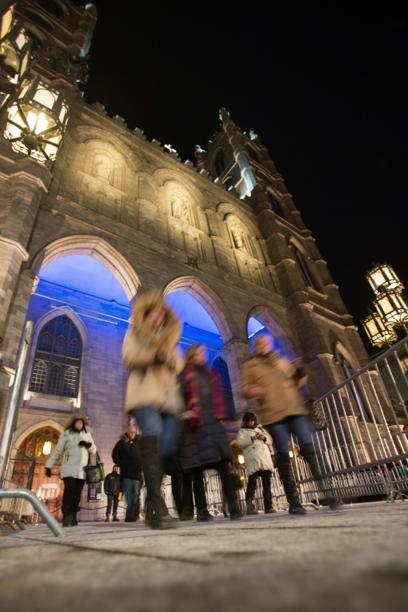| Devant la basilique de Montréal, le 22 janvier 2016. |