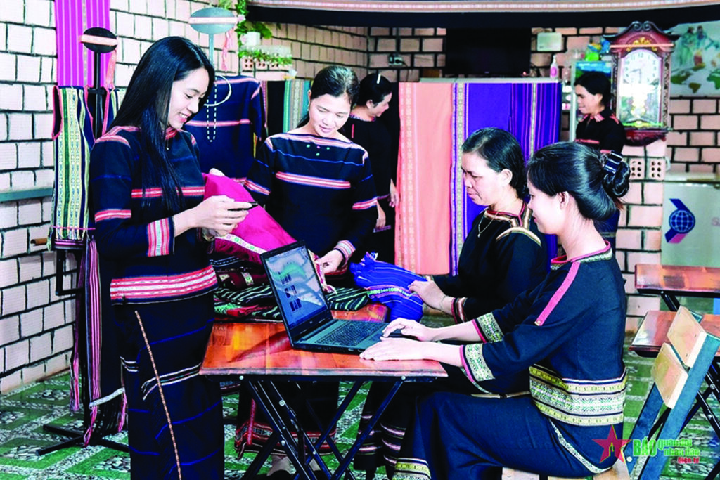 | Tisserandes du village de Phung vendant leurs produits sur des plateformes d’e-commerce. |