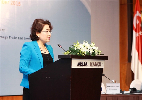 | Nguyên Thi Minh Tuyêt lors d’une conférence du Réseau des femmes entrepreneurs de l’ASEAN, le 10 décembre à Hanoi. |