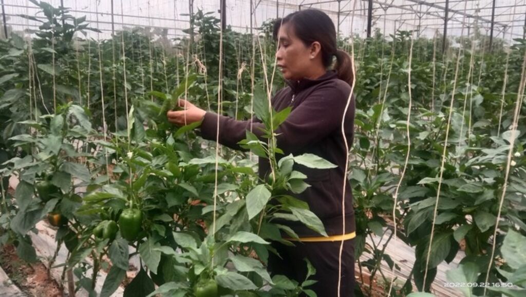 | Ka Luong et sa plantation des légumes et fruits sous serre. |