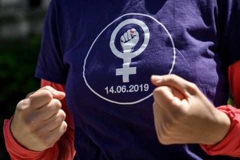| Des femmes manifestent pour l'égalité salariale, le 14 mai à Lausanne. |