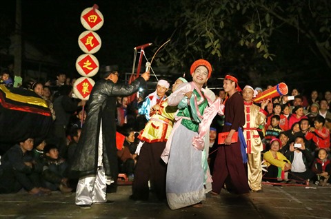 | Représentation artistique lors de la fête au monticule de Dông Da, à Hanoï, au cinquième jour du premier mois lunaire. |