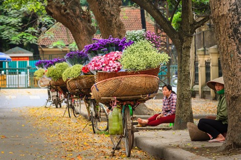 | Il est facile de trouver des marchandes ambulantes de fleurs dans les rues de Hanoï. Elles offrent une riche gamme de fleurs selon la saison. |