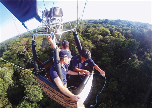 | Les scientifiques ont créé un ballon aérostatique avec lequel Moss a parcouru le pays pour condenser et analyser des gouttes de vapeur atmosphérique qui viennent d’Amazonie. |