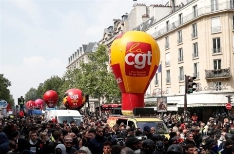| Le cortège de la CGT lors de la manifestation du 1er mai à Paris. |