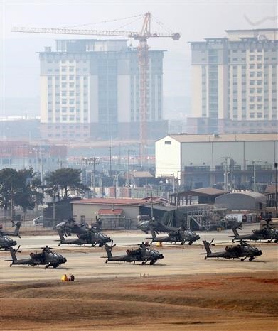 | Des hélicoptères americains au camp Humphreys situé sur la commune de Pyeongtaek en République de Corée. |