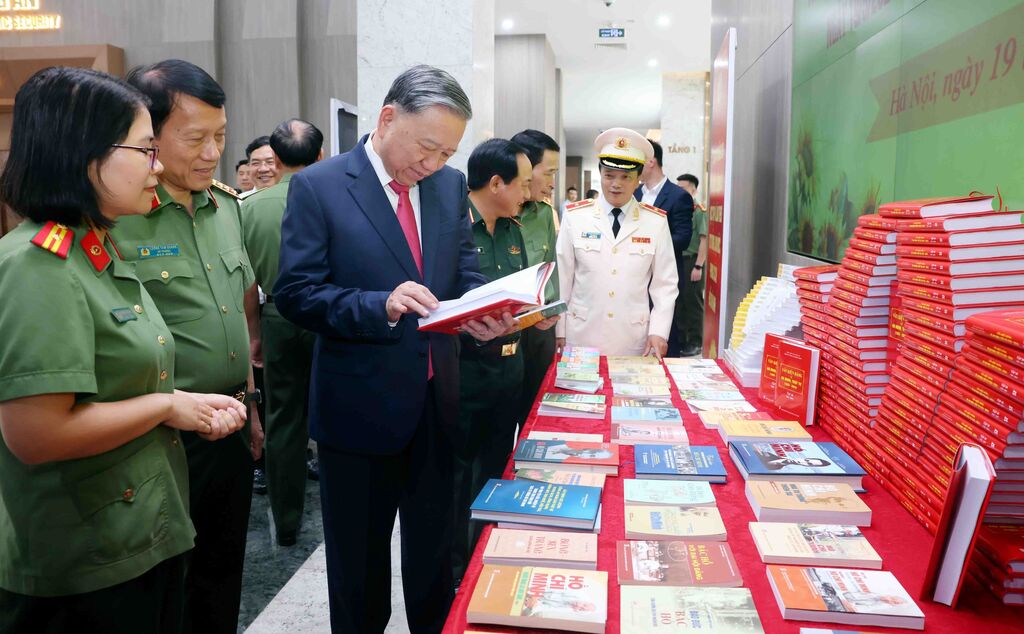 | Le secrétaire général du Parti, Tô Lâm, visite une exposition de livres lors de l'événement. |