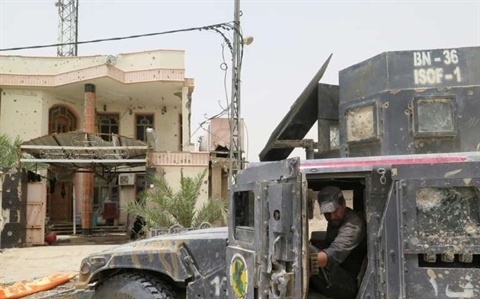 | Un véhicule des forces antiterroristes garées à Falloujah pendant une opération pour regagner la ville au groupe EI le 16 juin. |