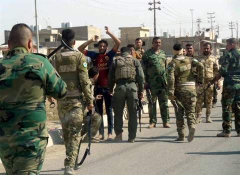 | Des forces de sécurité Irakiennes et Kurdes patrouillent dans une rue de la banlieue sud de Kirkouk, le 22 octobre 2016. Photo : AFP/VNA/CVN |