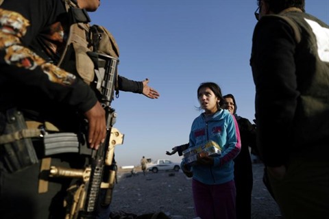 | Des familles irakiennes sont évacuées de Bartalla dans l'Est de Mossoul, le 23 novembre |