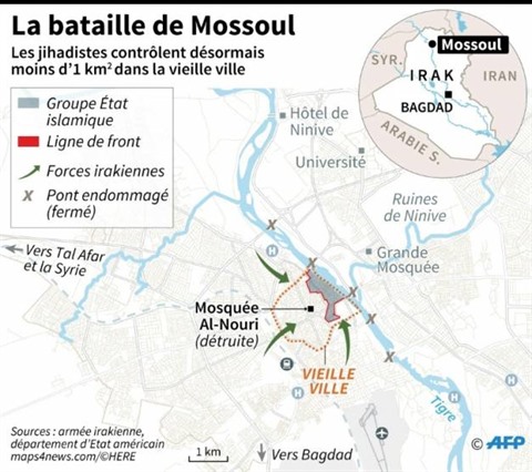 Au bord de la ligne de front, dans la vieille ville en partie ruinée par les violences, les forces d'élite du contre-terrorisme (CTS) sont arrivées à environ 200 mètres du fleuve Tigre, contre lequel sont acculés les derniers jihadistes du groupe État islamique (EI) retranchés dans des pâtés de maisons.