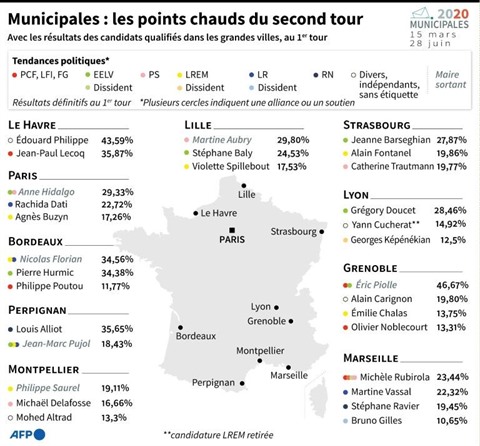"Elle a mené un projet politique qui a réussi à contenir la poussée écologiste qu'on enregistre ailleurs et elle est parvenue à mobiliser son électorat", analyse Bernard Sananès de l'institut d'études Elabe. Mais l'issue du scrutin est très incertaine à Lyon, Marseille, Toulouse, Strasbourg, Montpellier ou même Lille, principalement sous la pression des écologistes.
