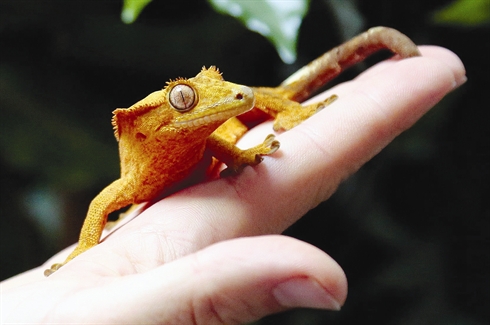 | Un gecko à crête, animal populaire parmi les terrariophiles pour son élevage relativement aisé et son caractère peu farouche. |
