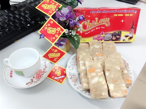 Certains bonbons étaient considérés comme un luxe pour le Têt ou les grandes occasions, par exemple les dragées ovales composées de graines d’arachide enveloppées de farine sucrés (keo trung chim), les nougats aux arachides (keo lac) dont la variété keo sìu Trìu Châu a fait la réputation de Nam Dinh depuis près d’un siècle et demi.