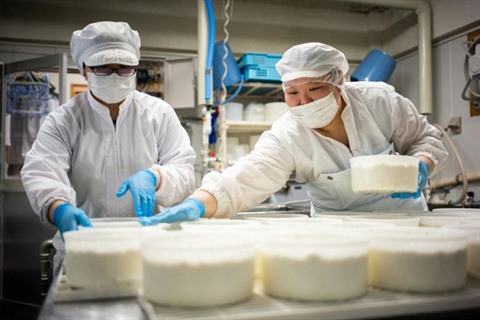 Des employées de la fromagerie Nasunomori préparent des Brie, le 25 juillet à Nasushiobara, au nord de Tokyo. Photo: AFP/VNA/CVN |