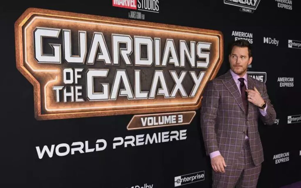 | L'acteur américain Chris Pratt dans les Studios Marvel pour la présentation du volume 3 des "Gardiens de la Galaxie" à Hollywood, en Californie, le 27 avril. |