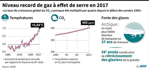 Selon ce rapport annuel publié par l'Agence nationale océanique et atmosphérique (NOAA) et la société américaine des météorologistes, tout un ensemble d'indicateurs montre que le réchauffement de la planète s'est accéléré sous l'effet de la combustion d'énergies fossiles qui augmentent la concentration des gaz à effet de serre dans l'atmosphère en 2017, l'année durant laquelle Donald Trump a annoncé le retrait des États-Unis de l'accord international de Paris sur le climat.