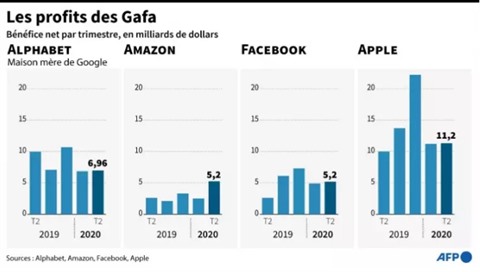 | Bénéfice net trimestriel d'Alpabet (Google), Amazon, Facebook et Apple. |